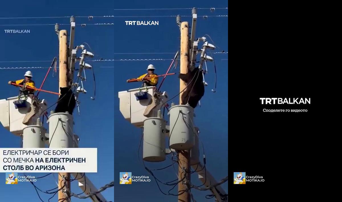 Електричар се бори со мечка на еле